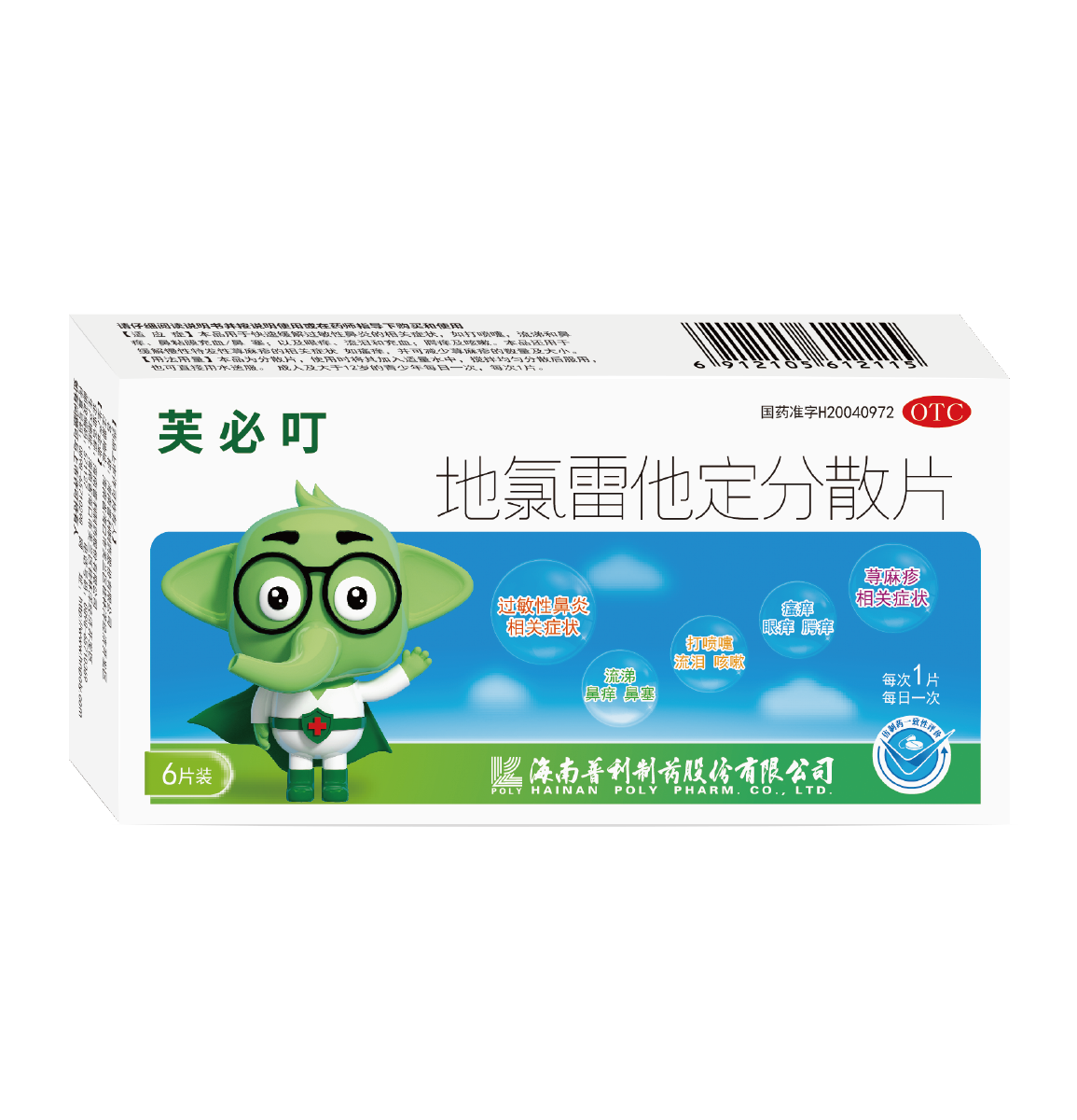 地氯雷他定分散片,最新一代的抗组胺药物!国家医保、中国家中常备药上榜品牌、连续五次获得中国医药.品牌榜、OTC黄金单品。 包衣微粒分散技术:迅速崩解、溶出快,起效快 特色结构:无需代谢,地氯雷他定是直接起效成分 快速持久:20分钟起效,持续作用24h;抗组胺、抗过敏、抗炎多效合一; 安全性高:无心脏毒性、无中枢镇静作用;无药物相互作用;无食物禁忌。
